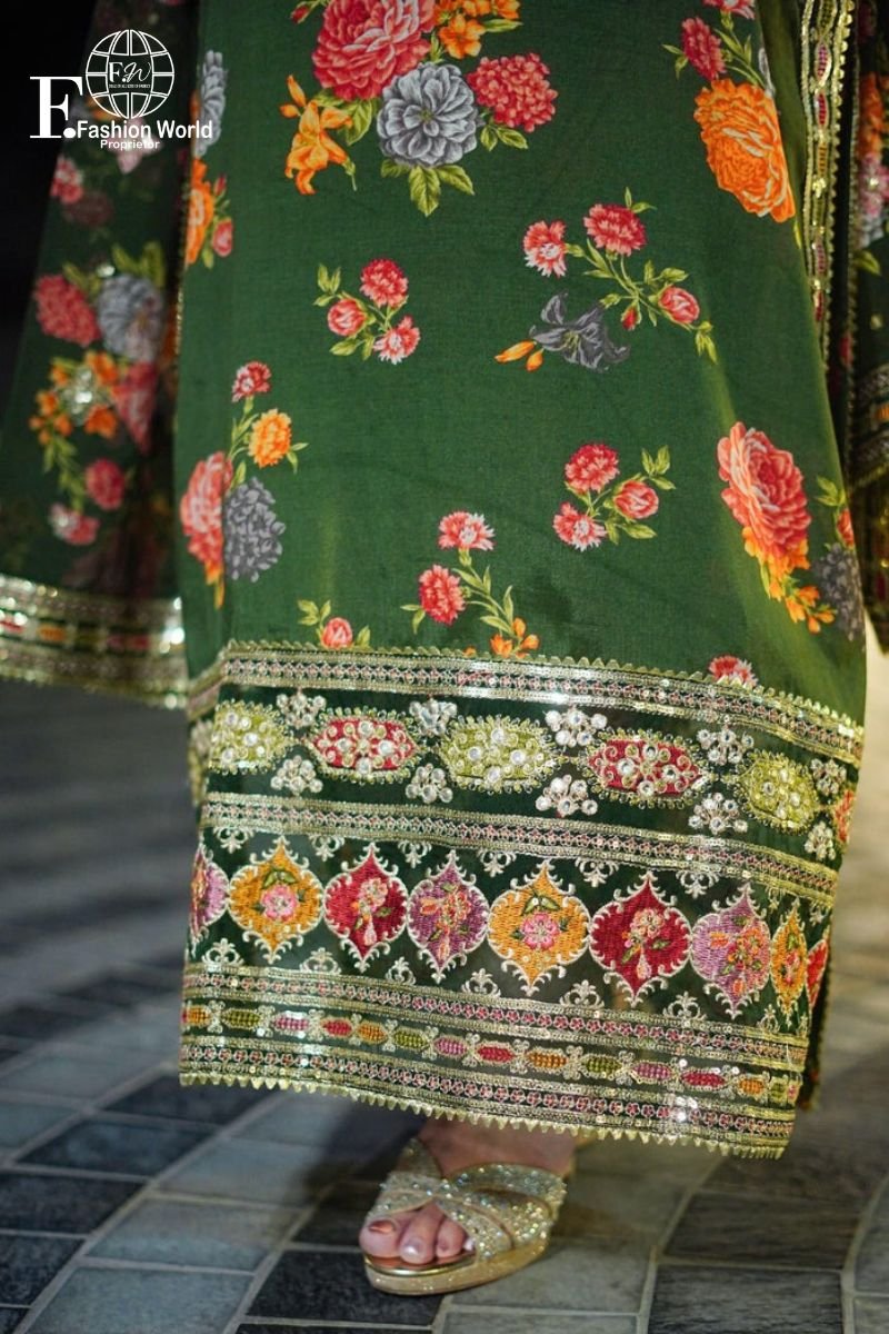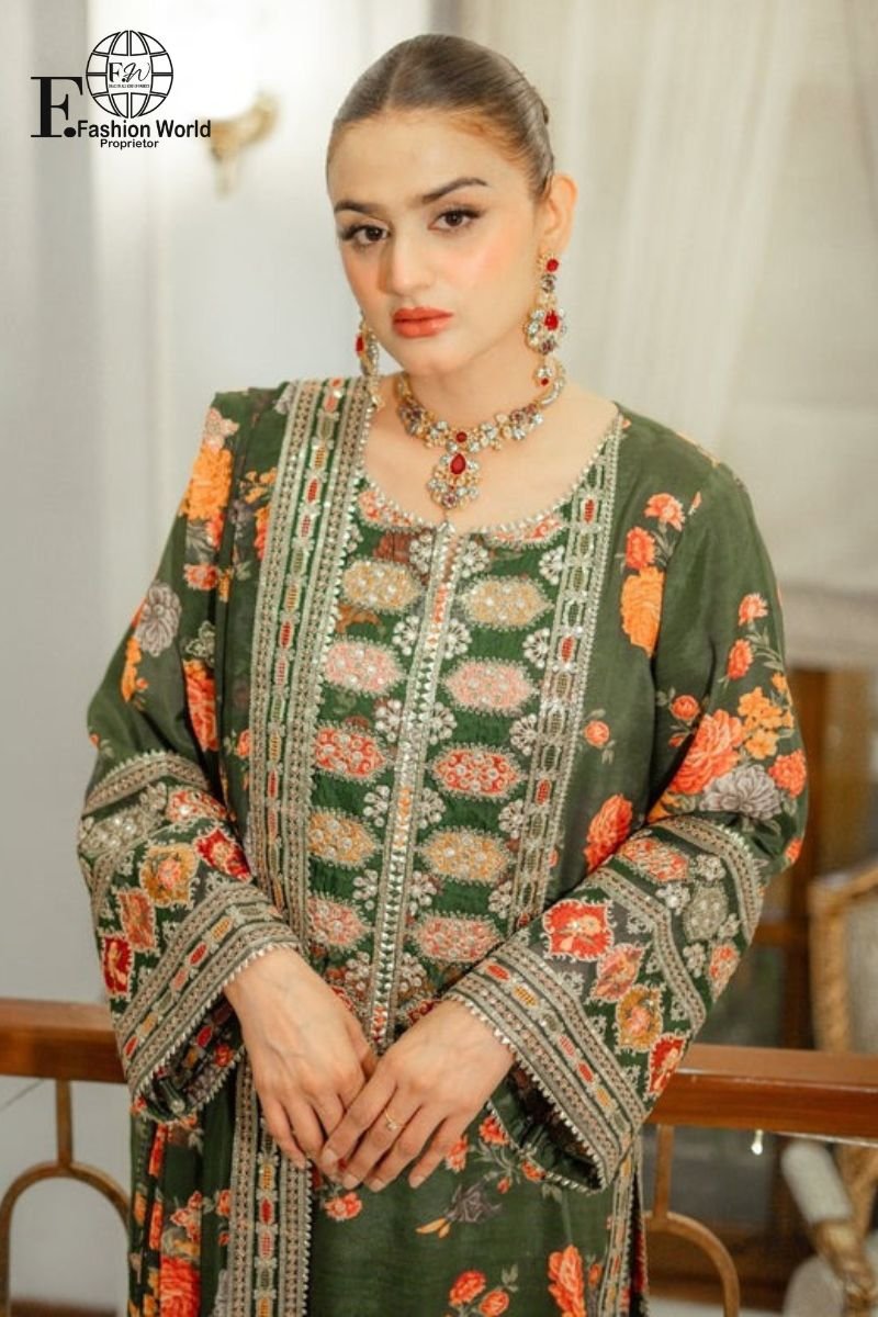 Upgrade your wardrobe with Fashion World’s Printed Lawn 3-Piece Unstitched Suit, designed for women who appreciate rich embroidery, premium fabrics, and elegant finishing.