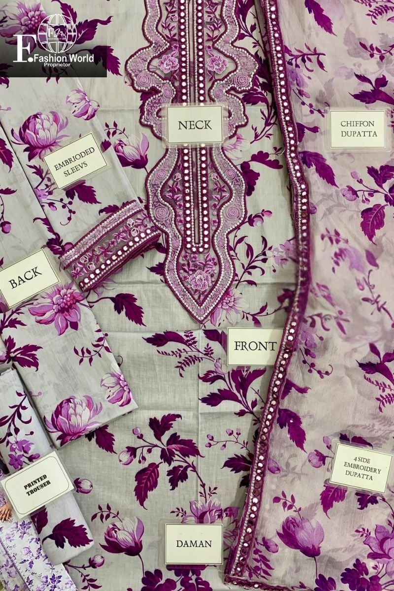 Experience elegance and premium craftsmanship with Fashion World’s Printed Lawn 3-Piece Unstitched Suit, designed for women who love stylish prints, soft fabrics, and beautiful embroidered details.