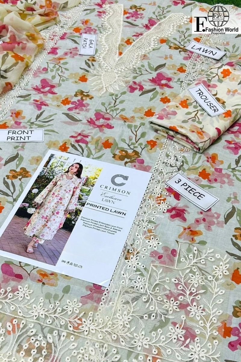 CRIMSON – Chikankari Sequenced Embroidered Lawn | 3-Piece Unstitched Suit | Semi Formal Lawn | ASP-24-05