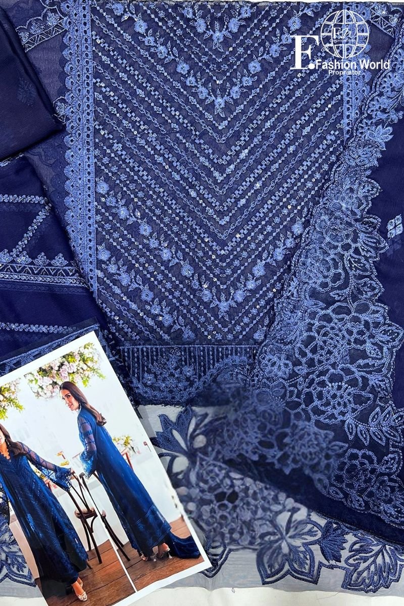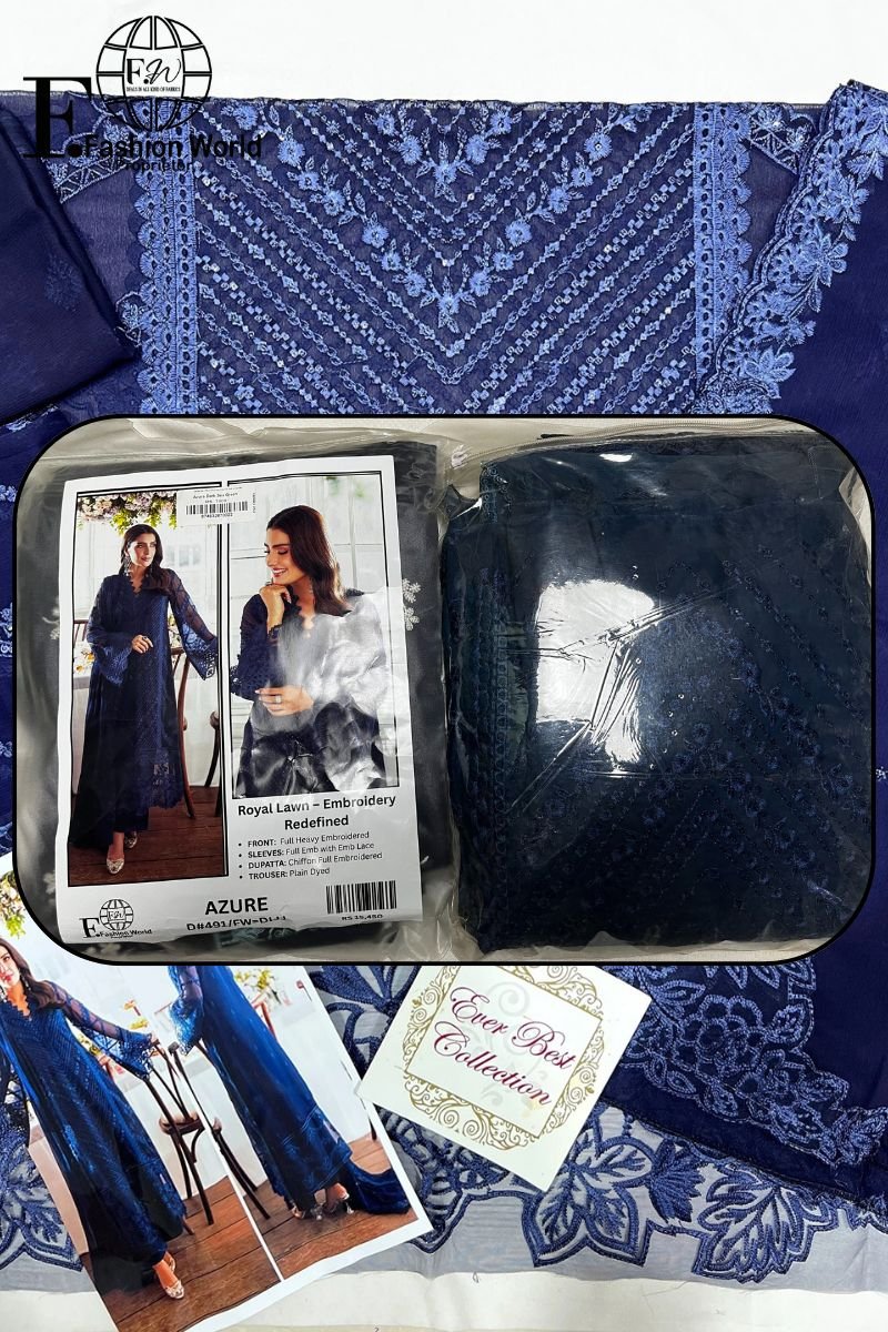 Step into sophistication with AZURE’s Velvet Aura (Design #591) — a 100% original designer outfit crafted to perfection for , festive events, and formal soirées. 🌹👗 Front: Full heavy embroidery on premium cambric lawn fabric, creating a regal and luxurious appearance.