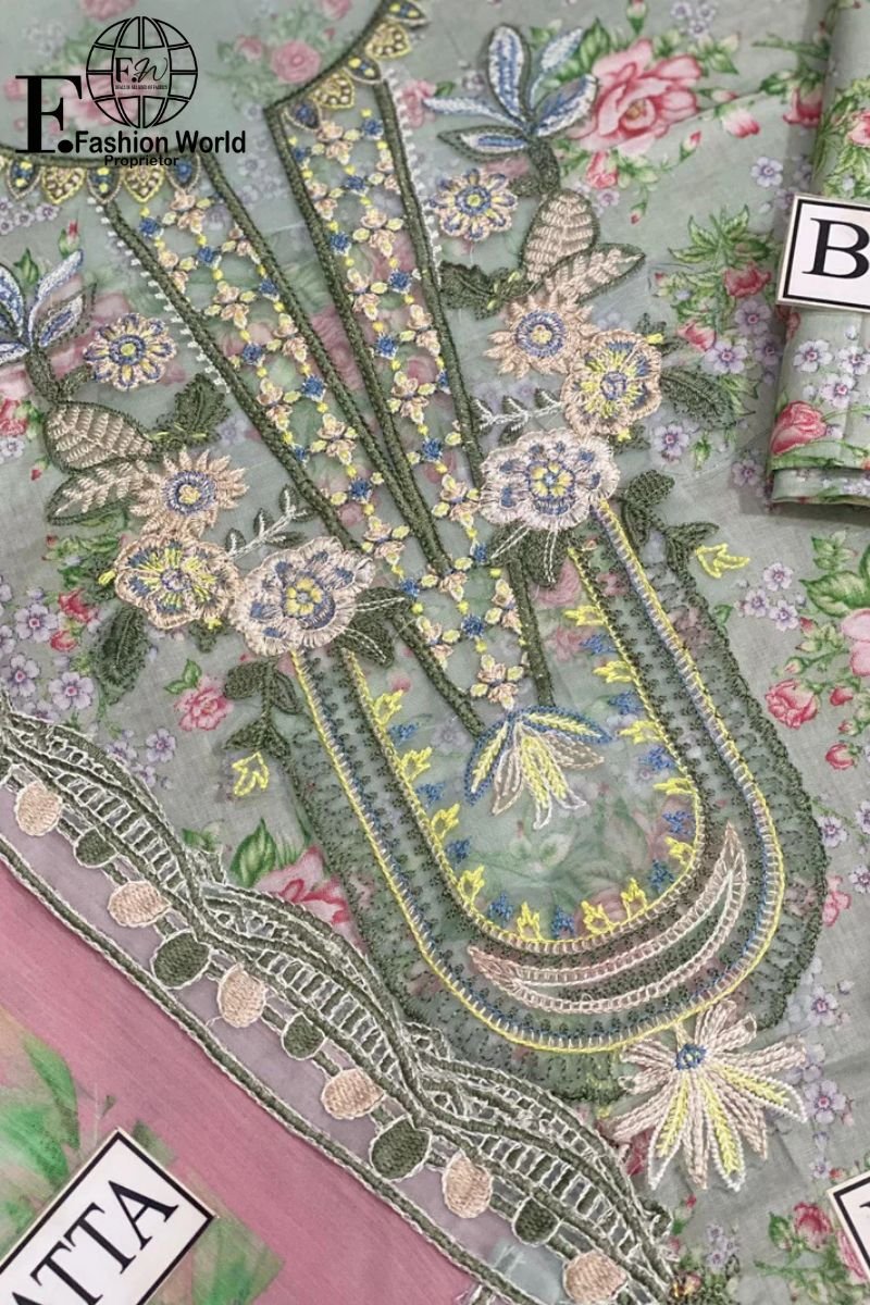 Front: Embroidered Chikankari Lawn Front with Elegant Embroidered Patch