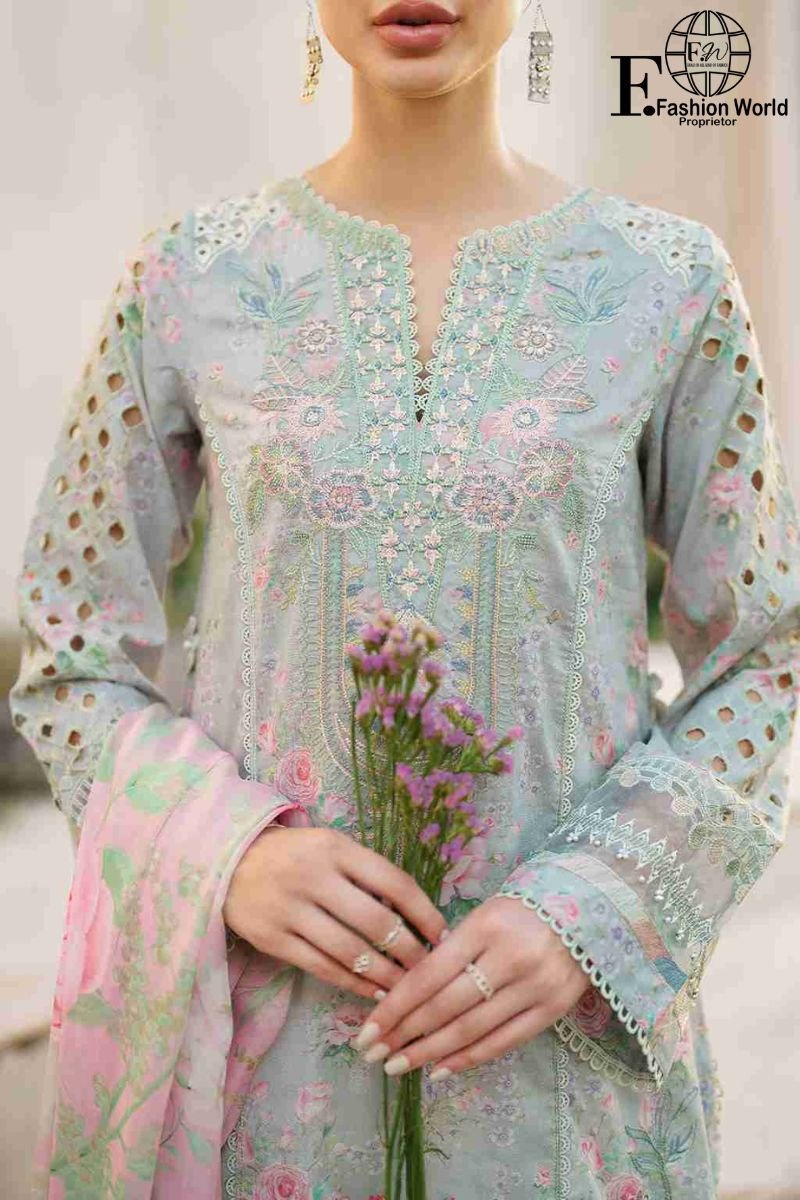 Crafted with premium lawn fabric, this suit features delicate Chikankari embroidery that enhances its timeless charm. The printed chiffon dupatta adds a touch of elegance, making it perfect for both casual gatherings and semi-formal events.
