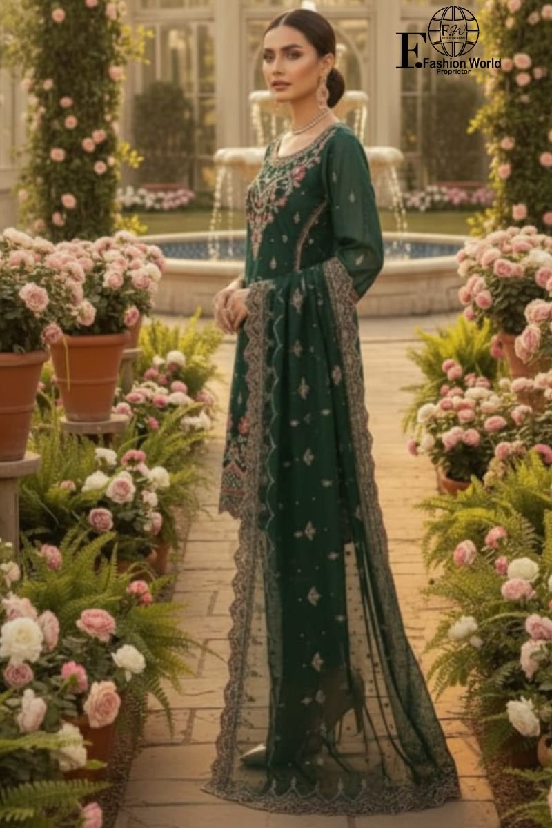 Kai Green-Organza Embroidered-Stitched 3-Piece Suit | Heavy Embroidered With Stone Handwork | Wedding Outfit