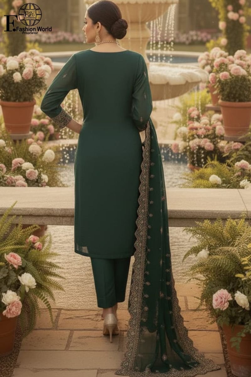 Sleeves: The sleeves feature fine embroidery, beautifully complementing the front design. The embroidery on the sleeves enhances the overall elegance of the ensemble, ensuring a cohesive and refined look from every angle.