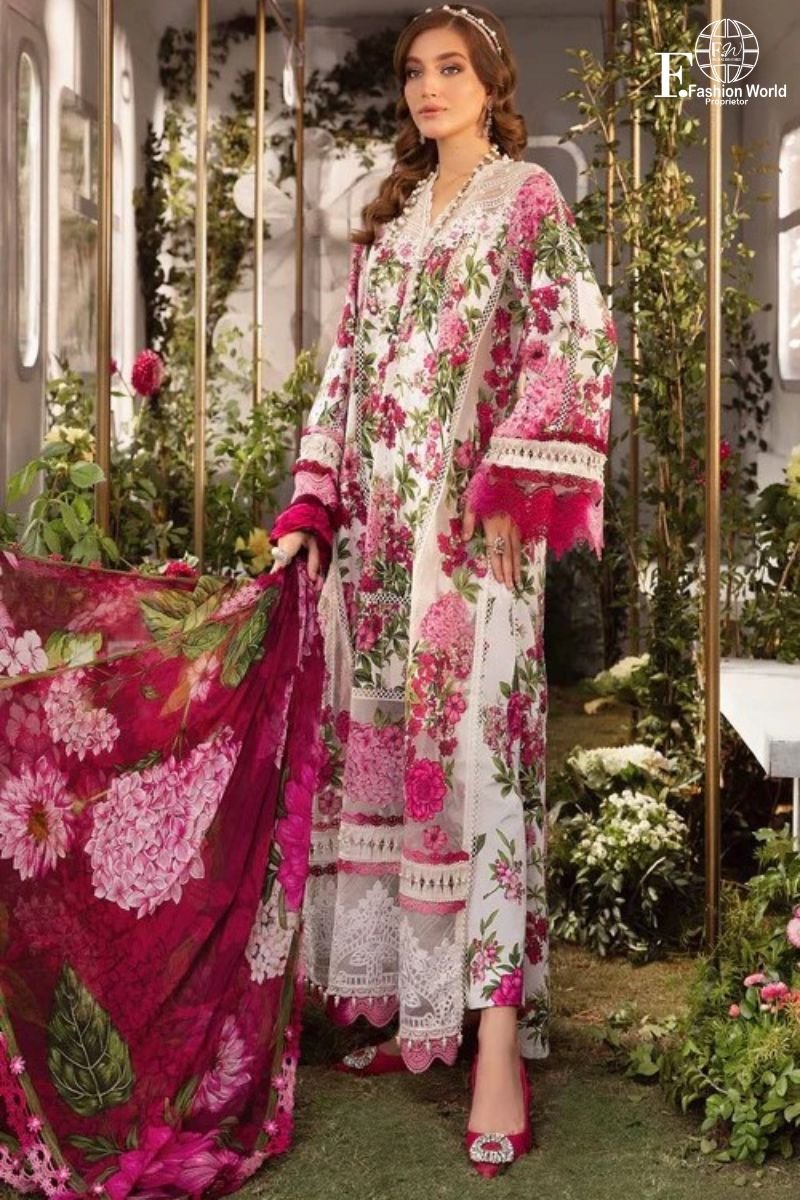 Add graceful charm to your everyday and festive wardrobe with Fashion World’s Embroidered Printed Lawn 3-Piece Unstitched Suit, designed for women who love subtle embroidery with modern prints.