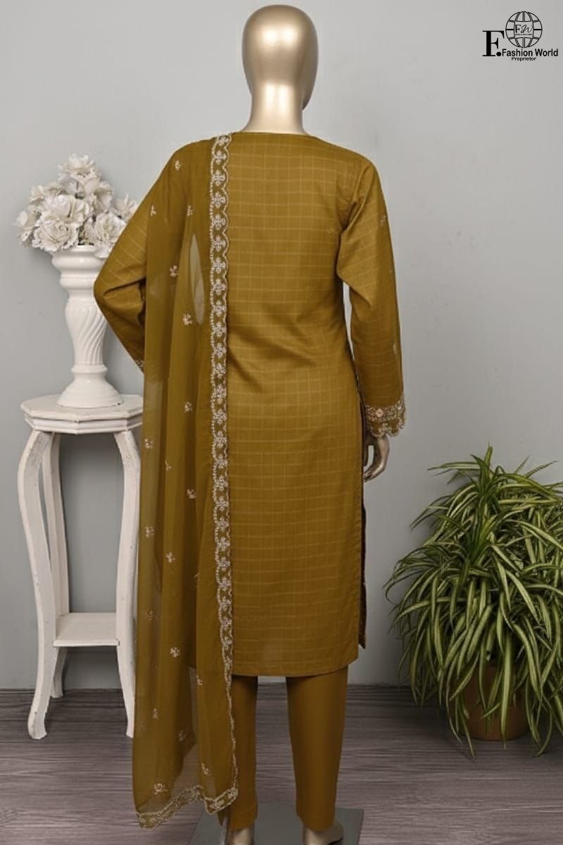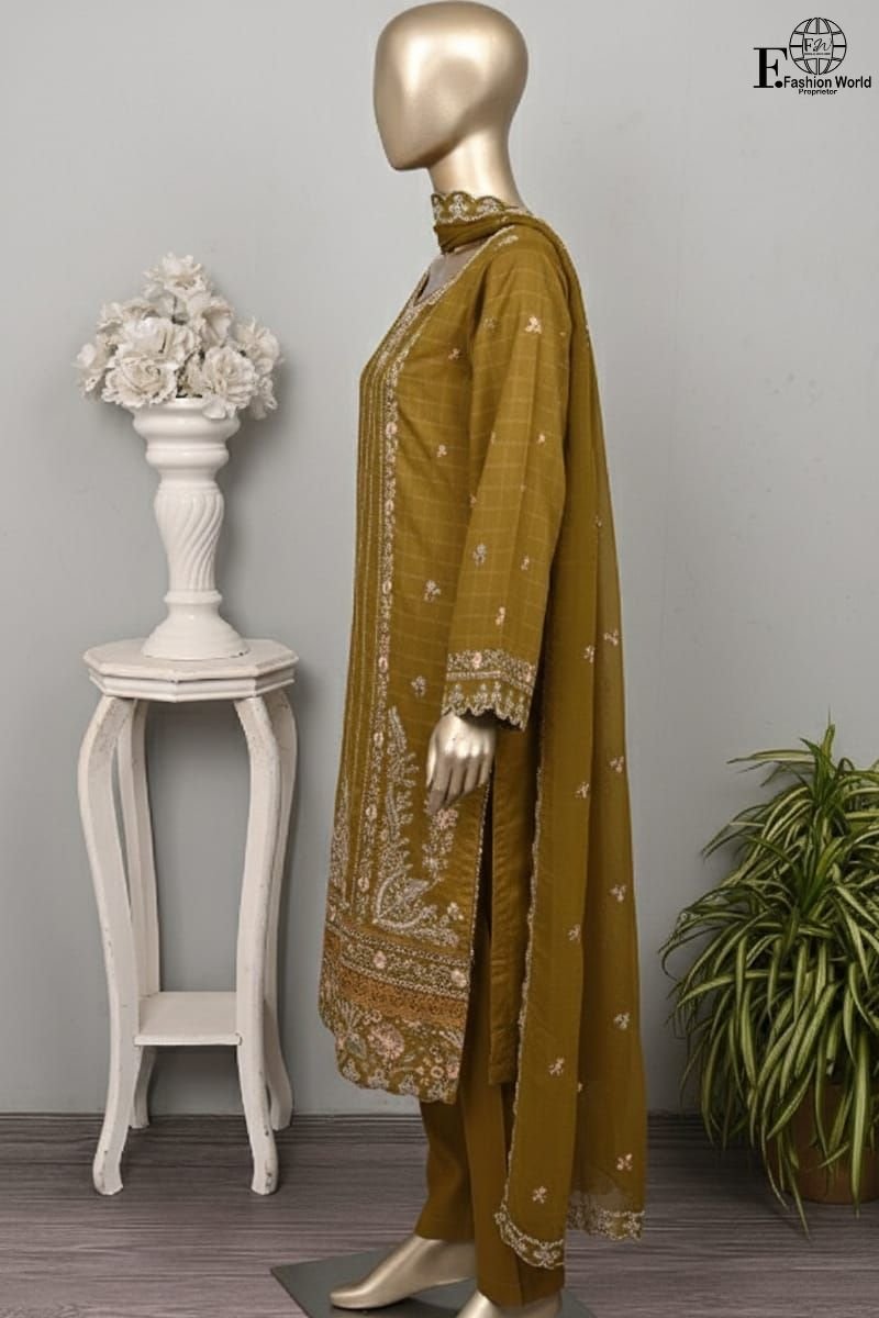 Experience timeless elegance with this beautifully embroidered unstitched 3-piece ensemble from the Serafina collection by Peach by Rivaaj. Designed in a rich brown tone with intricate detailing, this outfit is perfect for festive gatherings, formal dinners, and evening occasions.
