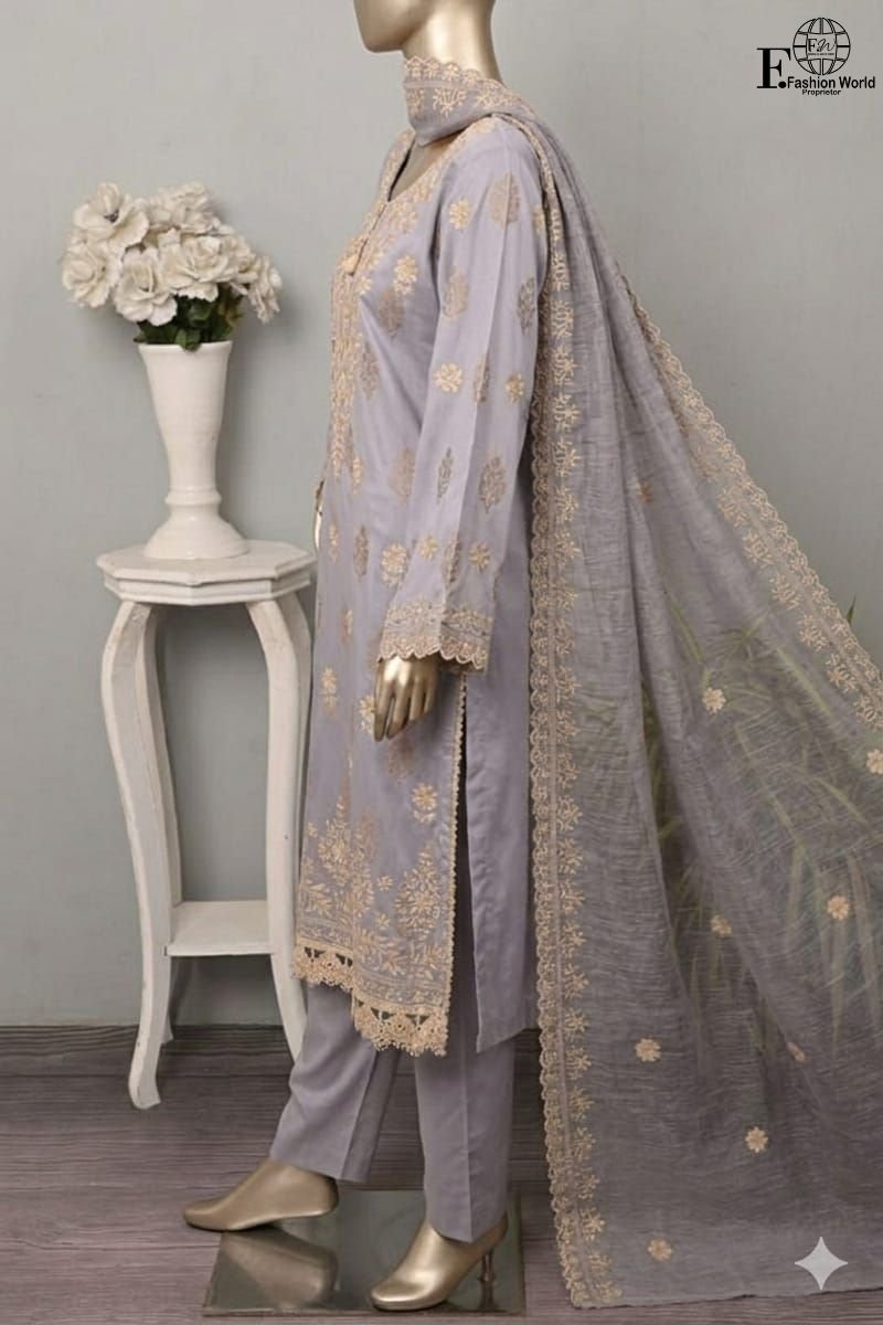 Embrace soft sophistication with this beautifully designed unstitched 3-piece ensemble from the Serafina collection by Peach by Rivaaj. Rendered in a graceful lavender tone, this outfit is the perfect blend of delicate embroidery and refined elegance — ideal for festive evenings, Eid, and formal gatherings.