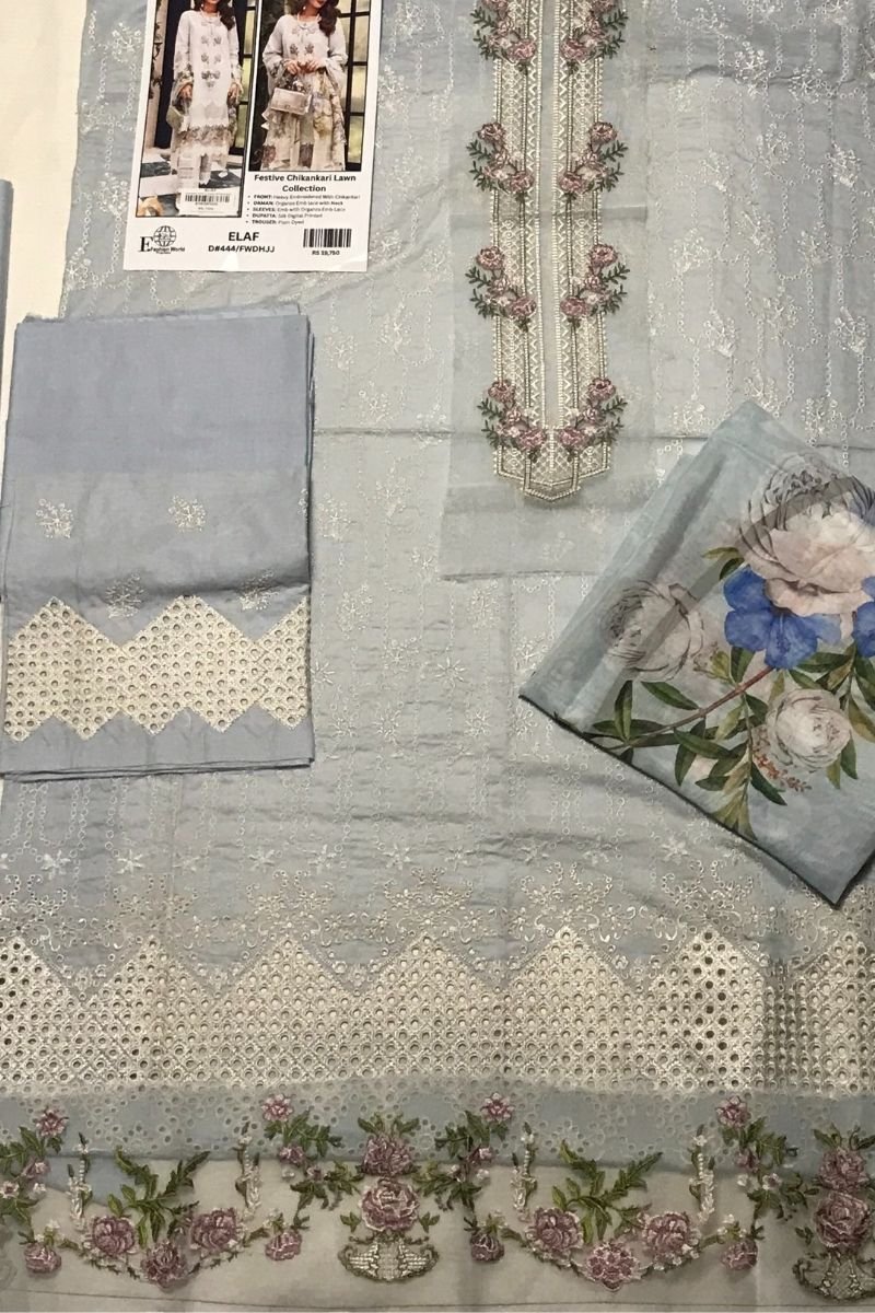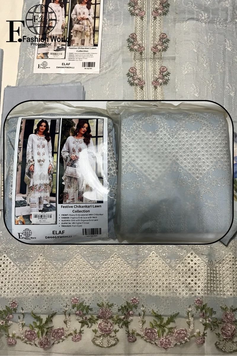 Pearl Charm – Elegant Chikankari Lawn Formal Unstitched 3-Piece Lawn embroidered Suit D#444