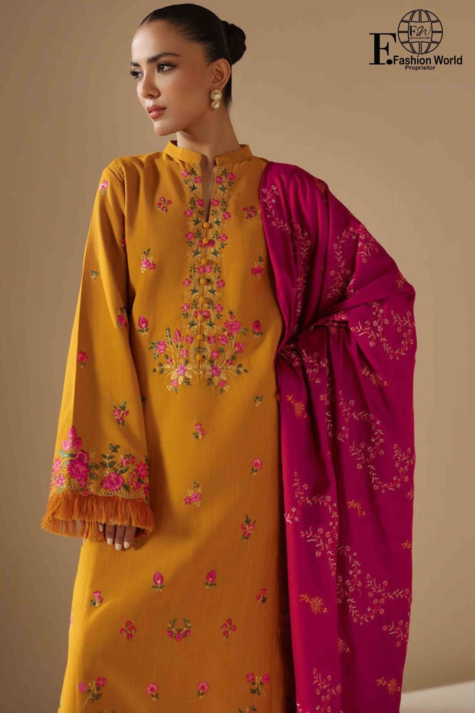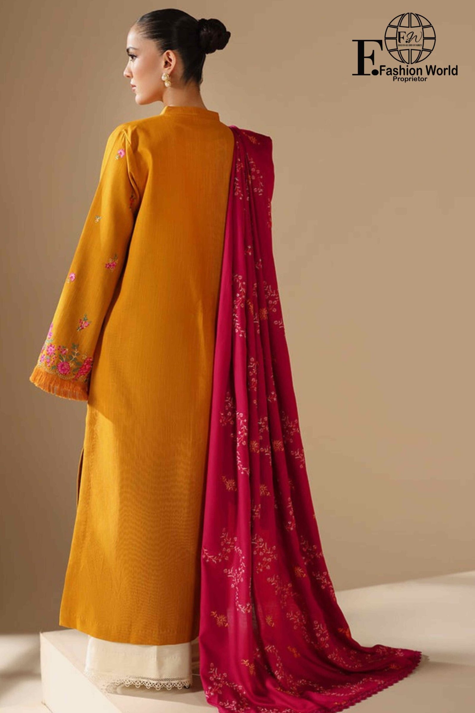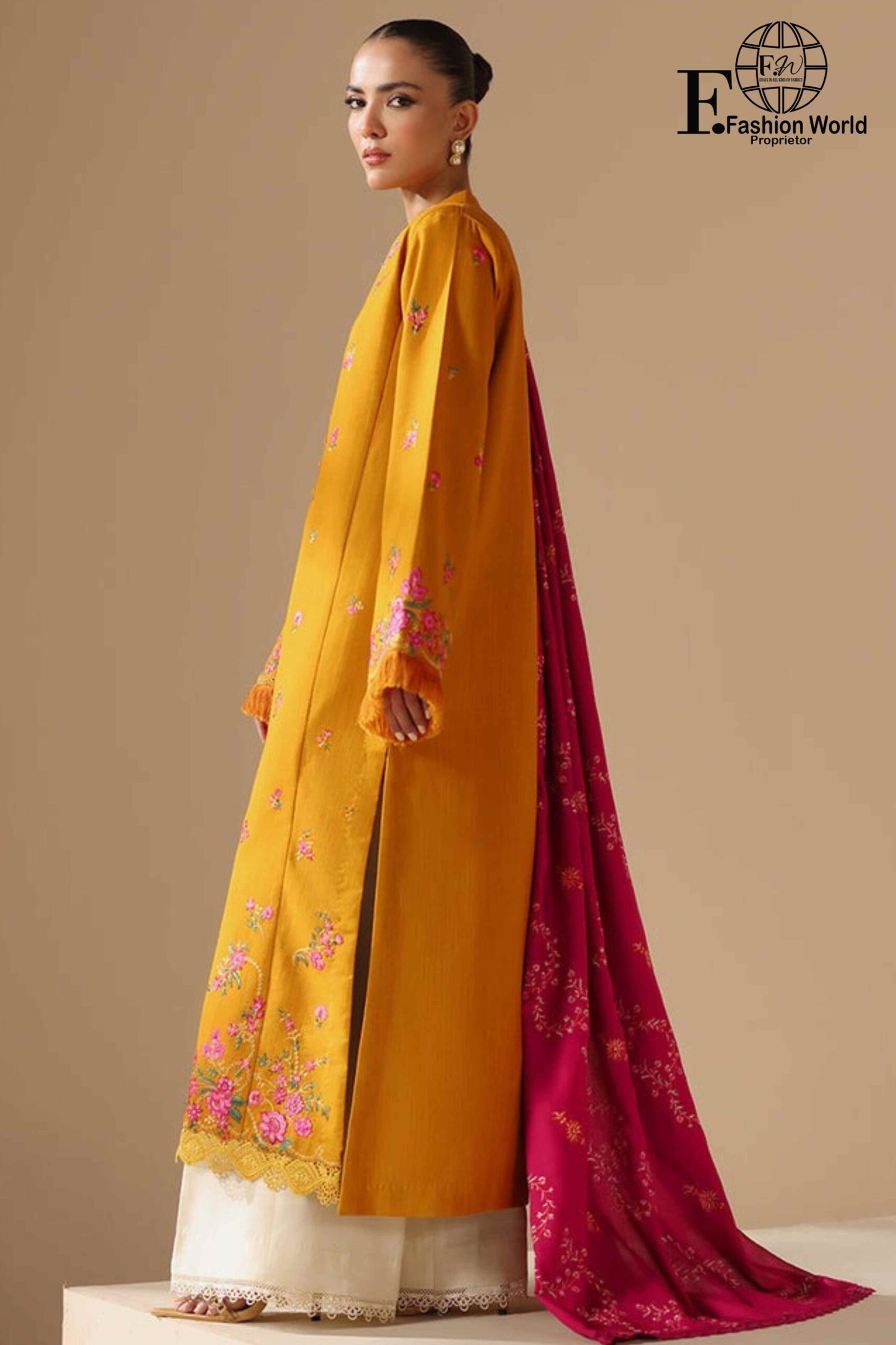 Dupatta: Luxurious chiffon dupatta, fully heavily embroidered, creating a graceful statement