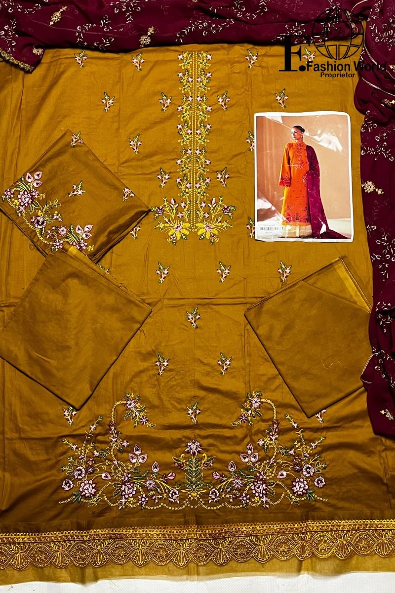 RAJBARI-Premium Embroidered Cambric Lawn Unstitched 3-Piece embroidered Suit D#539