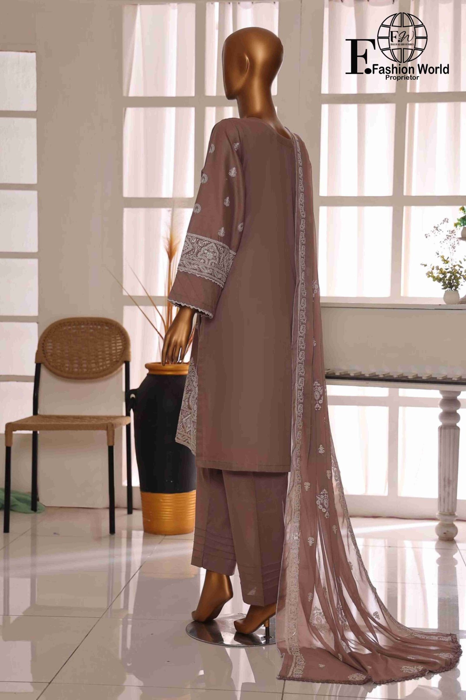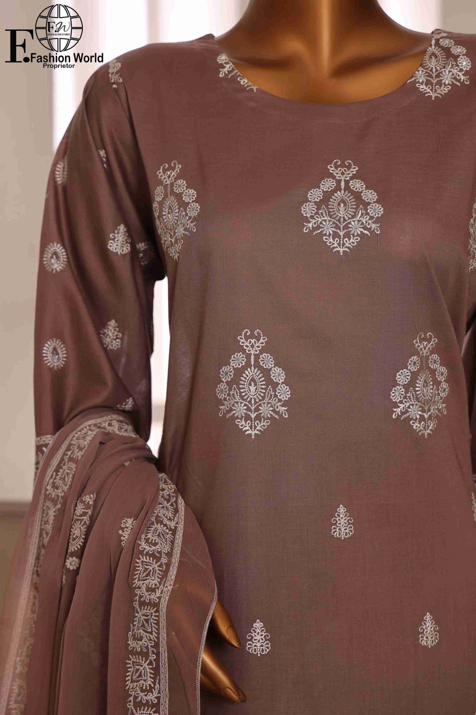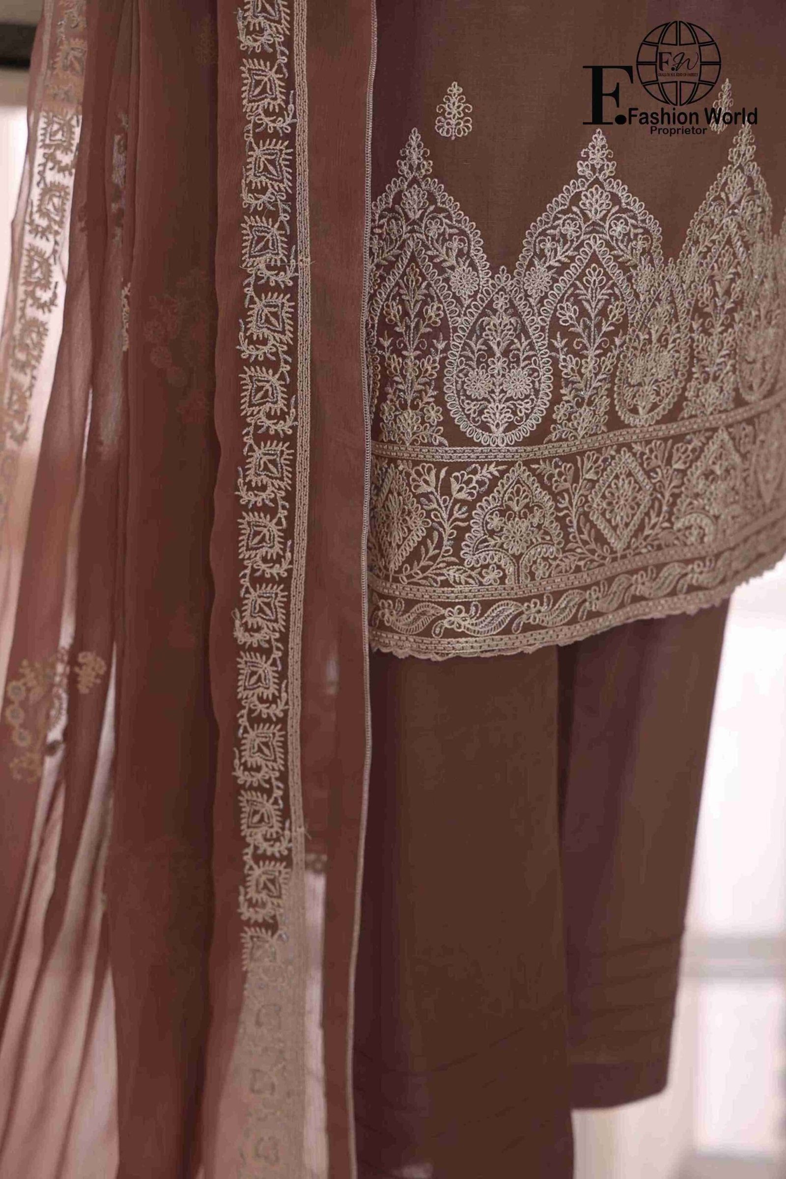 Dupatta: Luxurious chiffon dupatta with full embroidery, adding a graceful touch