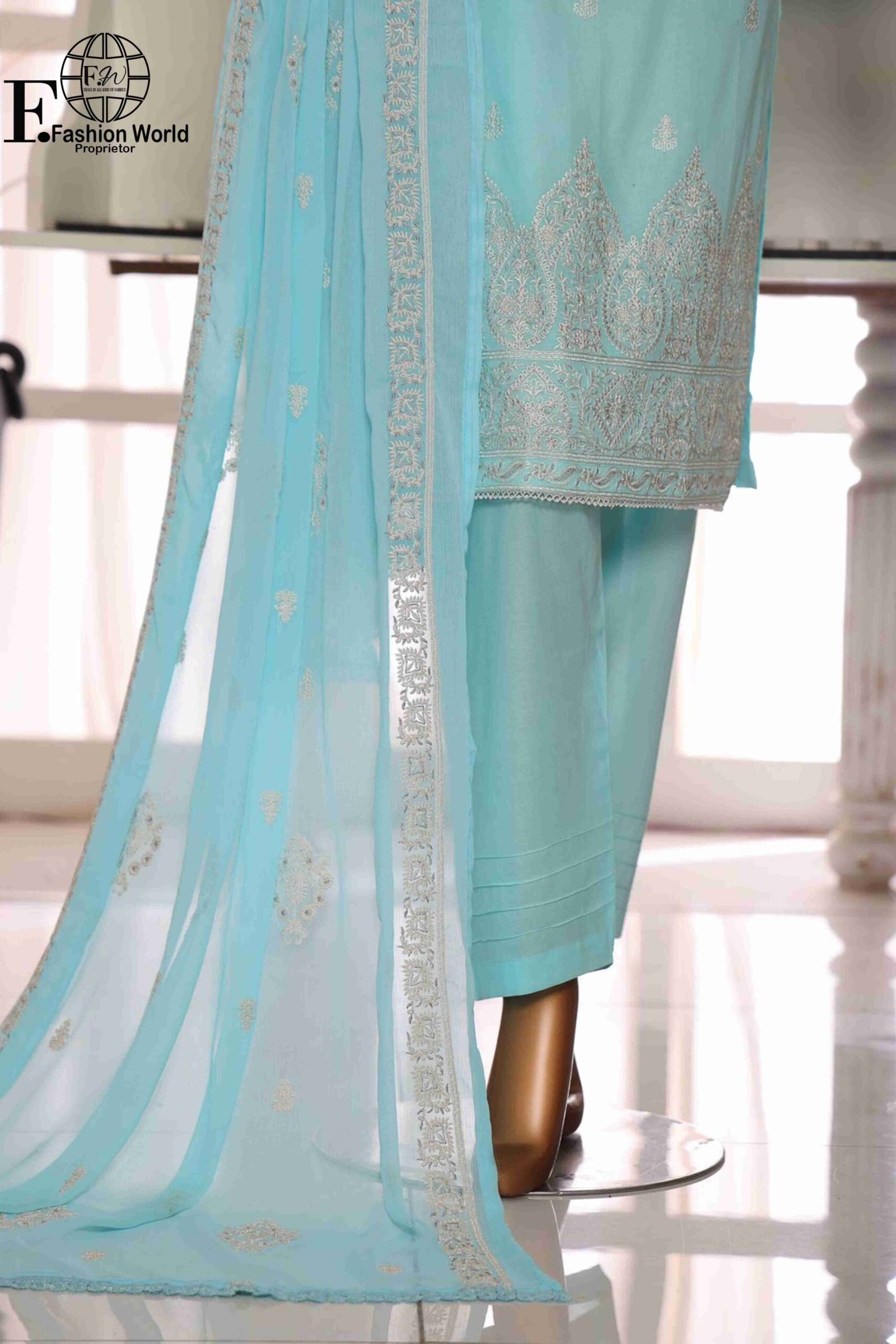 Dupatta: Luxurious chiffon dupatta with full embroidery, adding a graceful touch