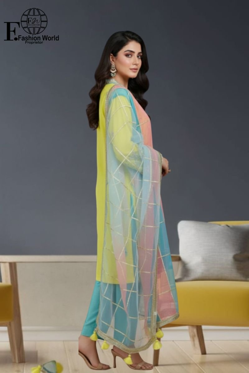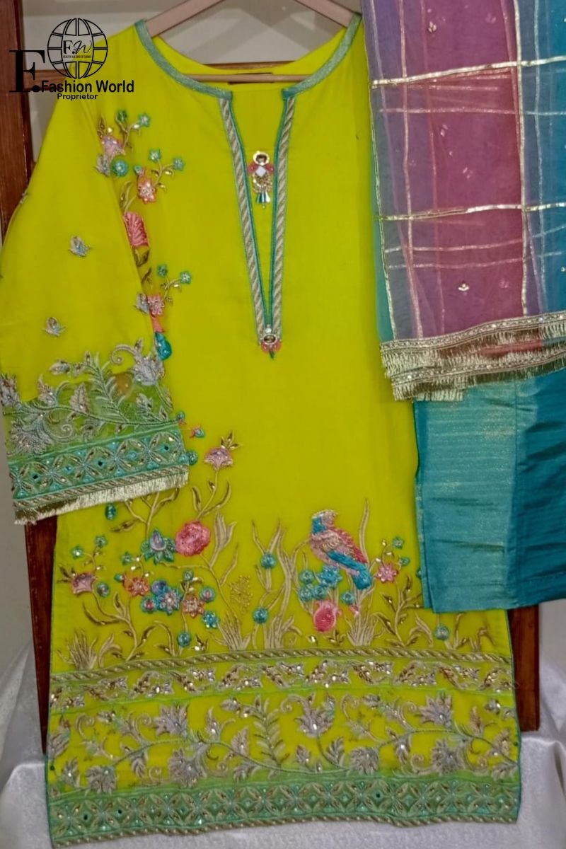 Step into festive perfection with our Luxury Lemon Yellow Organza Embroidered Fancy Dress, a breathtaking stitched 3-piece ensemble that exudes charm and grace. 🌸