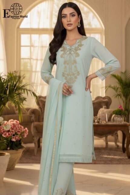👖 Trouser: Banarsi zari trouser in ferozi color, offering a perfect contrast and traditional elegance.