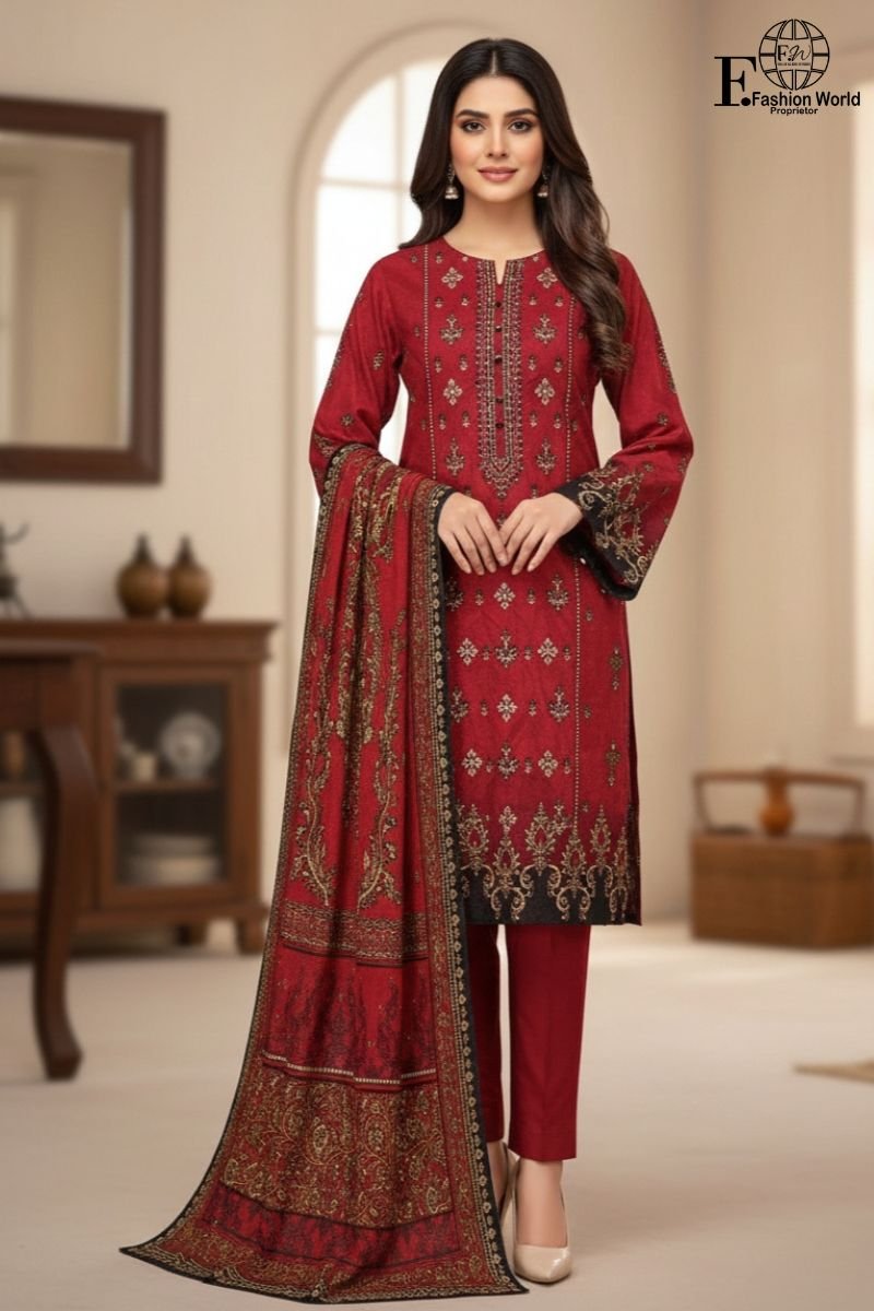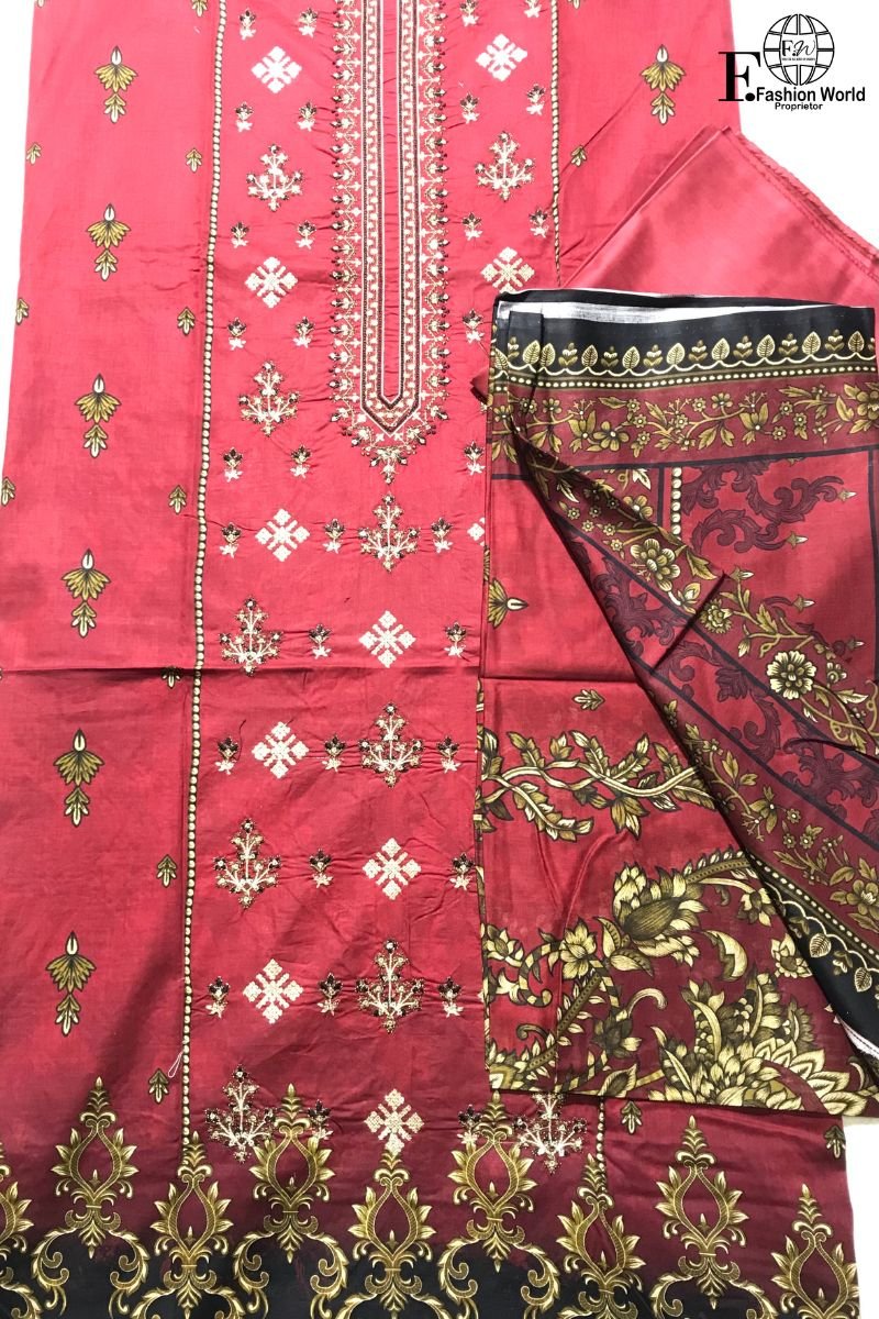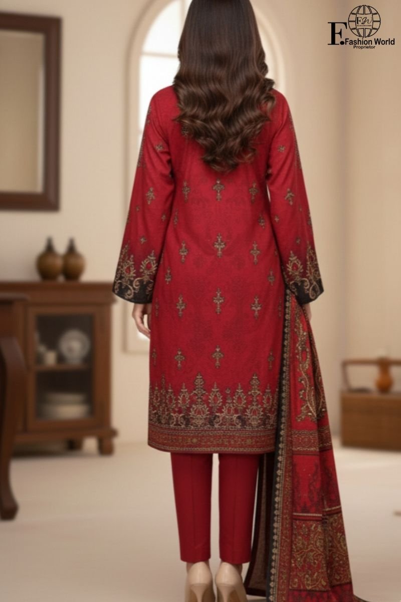 Upgrade your everyday style with Fashion World’s Digital Printed Embroidered Lawn 3-Piece Unstitched Suit, designed for women who prefer graceful prints with subtle embroidery and comfortable wear.