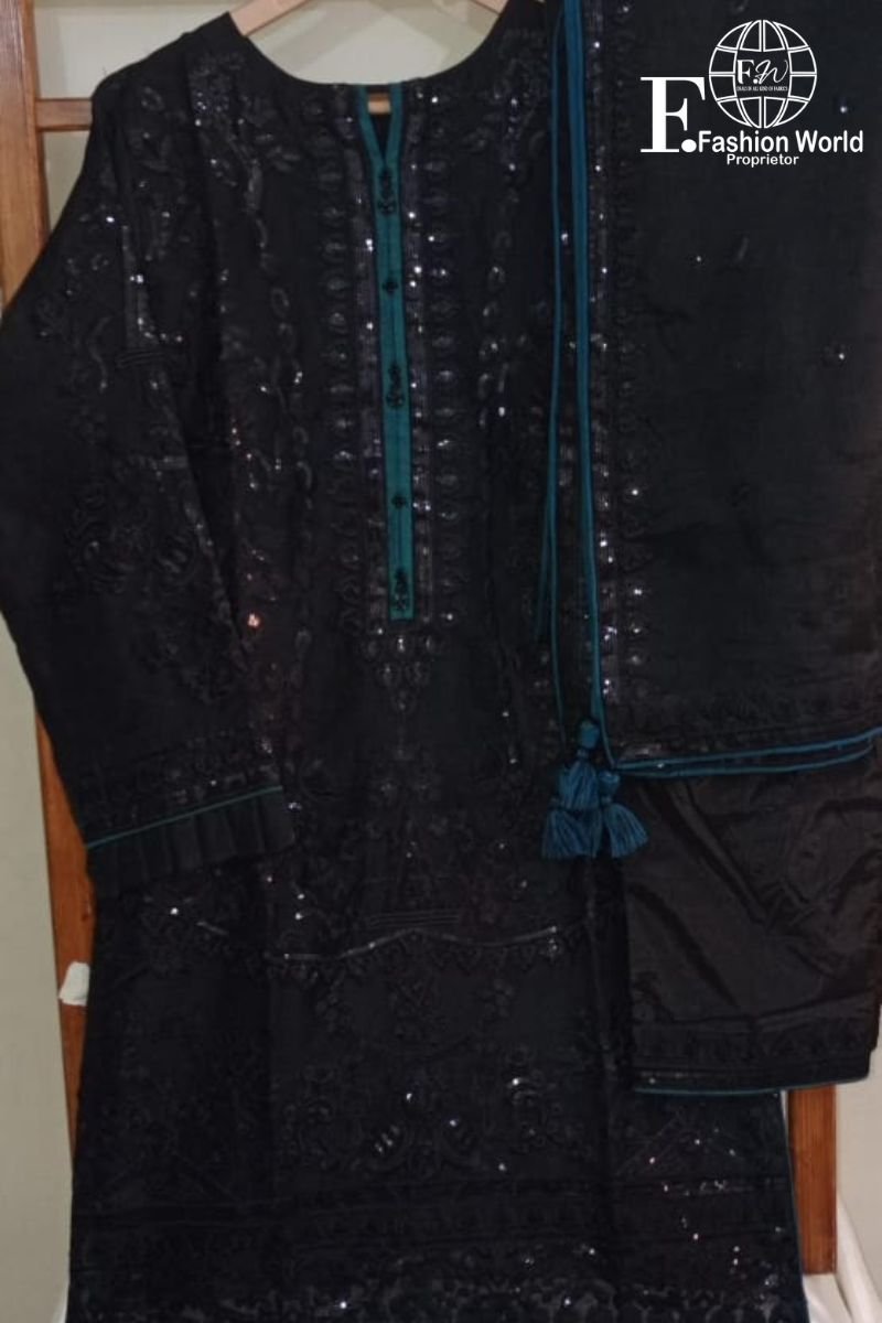 Fashion World – Organza Black Sequens Luxury Stitched 3 Piece Suit | D#24