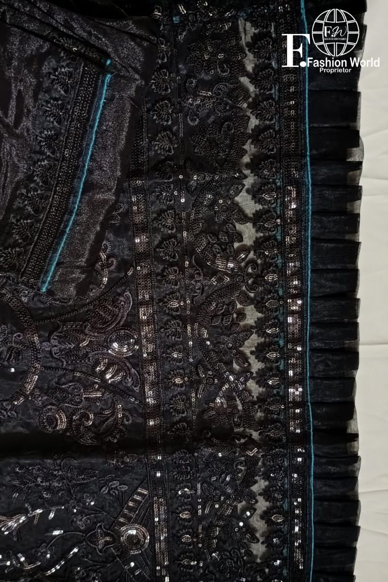 🖤 Design No. 24 – Luxury Black Organza Embroidered Suit by Fashion World 🖤