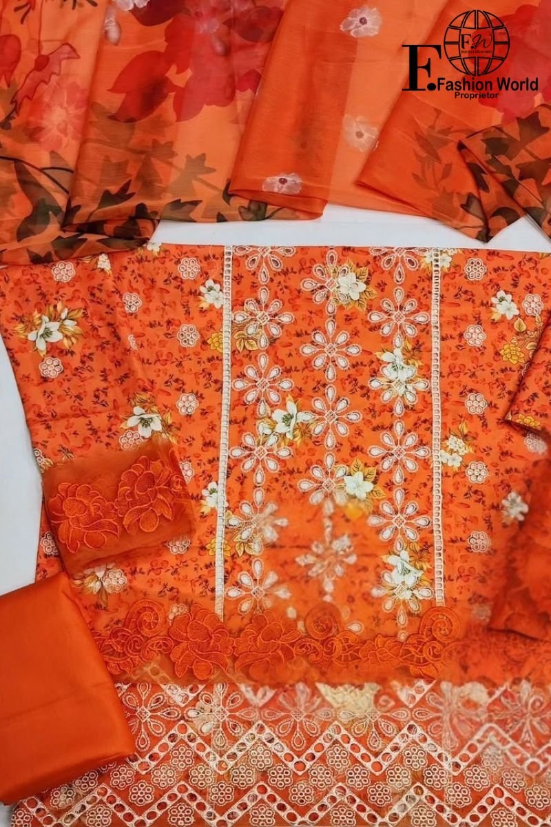 Front: Printed Lawn ChikanKari with Heavy Embroidered Daman